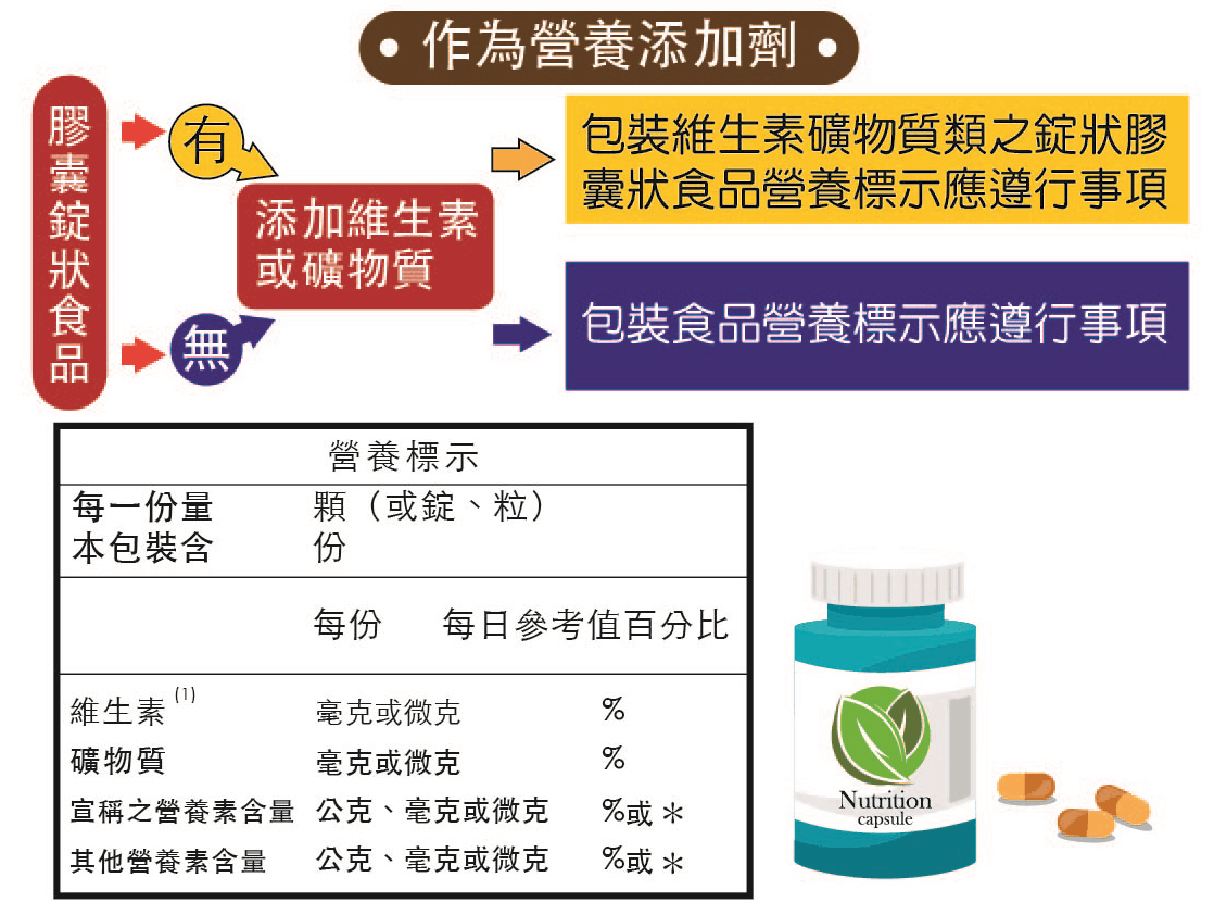 包裝維生素礦物質之錠狀膠囊狀食品營養標示 | 108.11.07 |