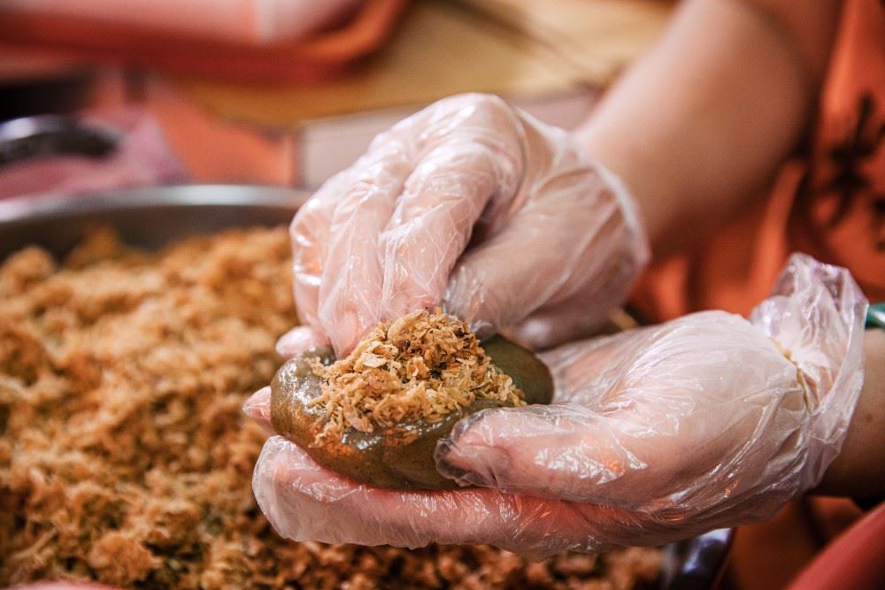 草仔粿外皮Q彈、咀嚼時帶著淡淡草香,再搭配不同風味的各種內餡如:菜脯米、紅豆…等還能滿足不同口味的需求,使得原本僅是清明節的祭祖點心,現已成為許多人喜愛的傳統小吃,而九份在地著名老店透露草仔粿好吃的秘方:「不添加太白粉,全是純糯米和再來米製作而成並堅持使用逾1年的老米,以確保口感Q彈。」早年,九份當地也有清明節吃草仔粿的習俗。每逢清明時分,許多礦工都會買草仔粿祭祖,使得當地店家紛紛在清明節前兼賣起草仔粿,而有些店家的草仔粿頗受顧客好評,漸漸地就變成平日也能買得到的傳統小吃了!