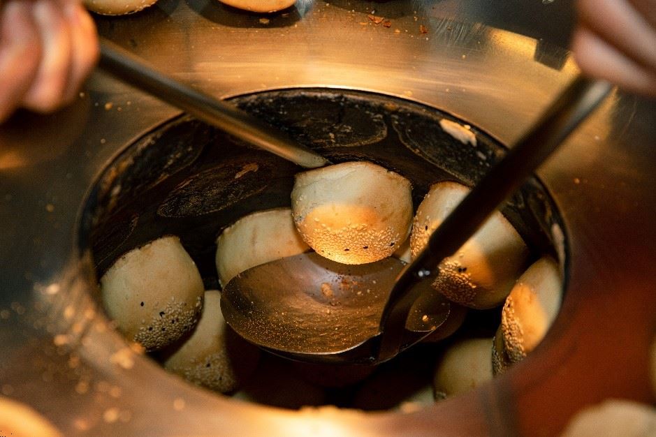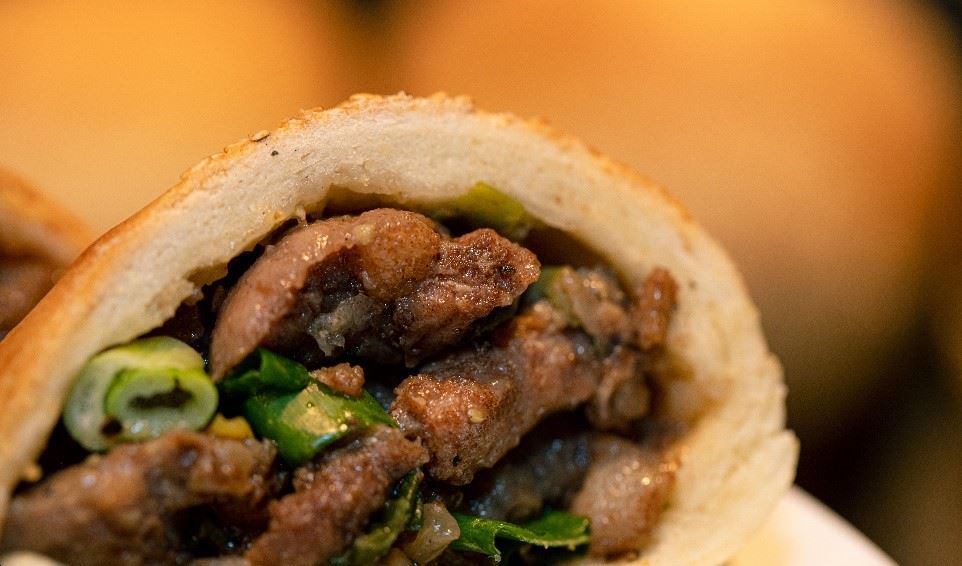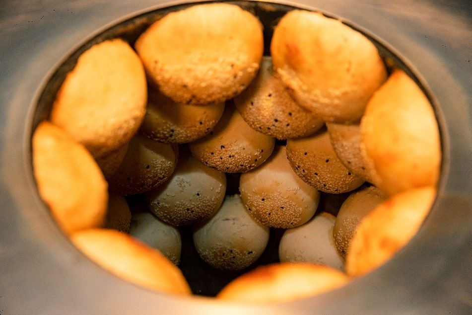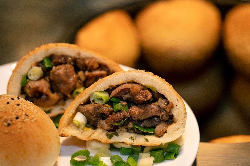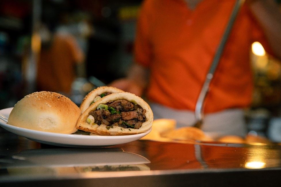 酥厚的老麵餅皮灑上芝麻,搭配當天送來的溫體豬肉,並將瘦肉切塊和滑嫩的五花肉作為內餡,輔以宜蘭三星蔥入餡,再貼著炭爐壁以350度的高溫烘烤著,出爐時一口咬下,嘴裡頓時伴著炭火香和鮮美肉汁,加上胡椒的提味功能,讓人不由地吮指回味,這就是台灣知名小吃胡椒餅,也是瑞芳第一家胡椒餅經常出現大排長龍等候人潮的原因。提到瑞芳,這裡曾是新北市第一大鎮,當年瑞芳礦業鉅子李建興的企業總部「義方商行」就位於瑞芳車站後站的瑞芳老街上,後站原是昔日最繁華的地段,但因街道狹隘、拓展不易而逐漸沒落,現在前站已比後站興盛,也成為當地許多知名小吃的聚集地。