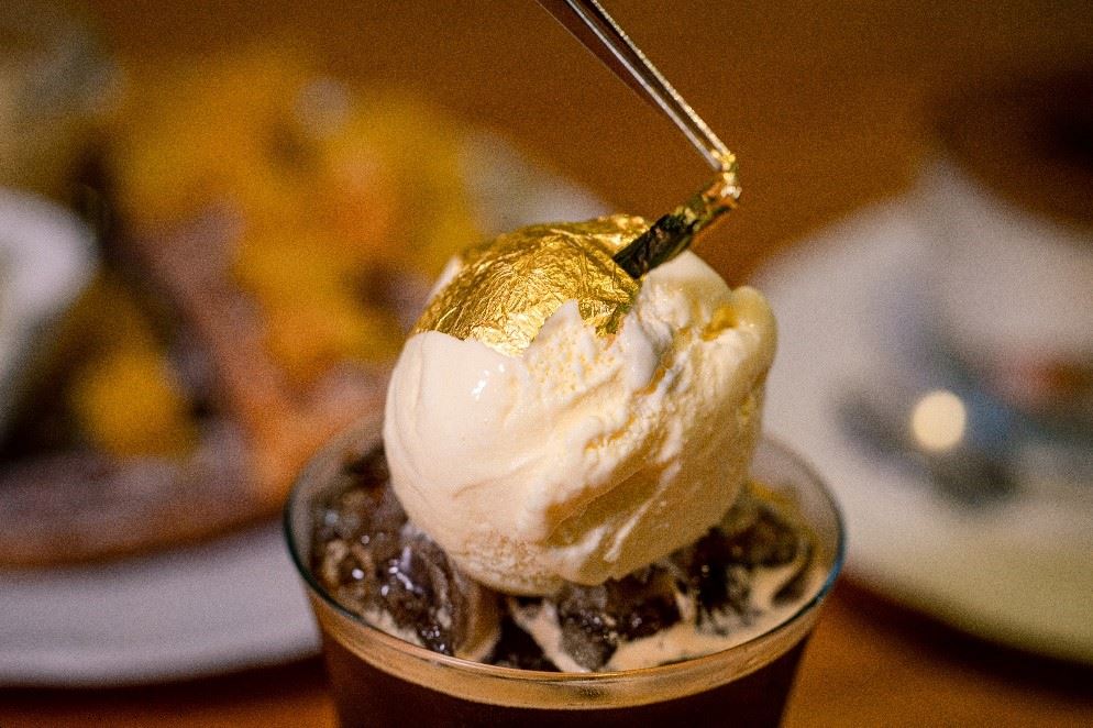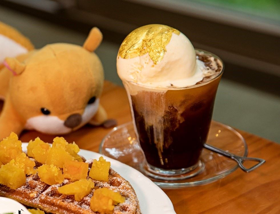 位於金瓜石的煉金文創咖啡,前身是金瓜石的礦工俱樂部,現在在這裡則能享受獨家調製的999黃金咖啡,在香草冰淇淋上添加一片食用級的純金金箔,連攪拌咖啡的小湯匙都以鏟子為造型,與鄰旁的黃金博物館旁相互幫襯,在結合當地文史、博物館主題與餐廳特色下,成功加深觀光客的旅遊印象及好感度。